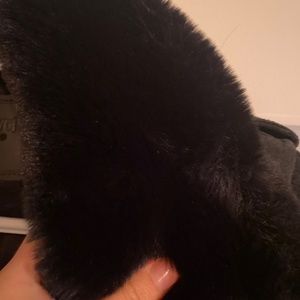 Black leather suede jacket with fur detachable collar
