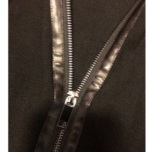 Black merino wool blend zip up mock neck retro cardigan new with tags. Merino wool and acrylic blend, cool faux leather detail by the zip, feels very luxurious and expensive. Marked size S. All measurements are approximate and taken with the garment laying flat: Armpit to armpit 19’’ Total length 26". This item comes from a smoke free, pets friendly home. Recycled bags/box used when possible. Please, let me know if you'd like any additional info. Thanks for watching!