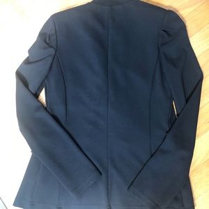 Black military jacquet. Padded shoulders. Closing up front with ties. Partly lined with nice fabric. Excellent condition.pit to pit 18 inches, length from shoulder 26 inches.