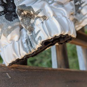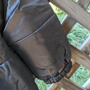 100% silk, filling 100% polyester. Size 6(size runs a little small). Condition is like new if not completely new. Bought in New York City.