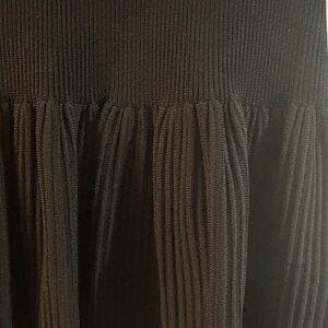 Black mini skirt : size large ; ribbed top into pleated bottom : elastic waist : size large ; nice structure to pleat