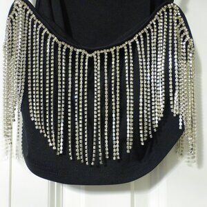 In excellent condition! It is super cropped! Tons of rhinestones strands on the front - very shiny and sparkly! The straps are adjustable. I normally wear XXS/XS/S and this fits me perfectly. It is a size S.