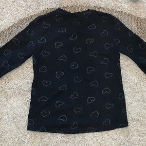 -Long sleeve shirt and pants, black with sparkly line down the pants and sparkly hearts of shirt, no stains or rips, bought in Italy. 9-10 yrs size.