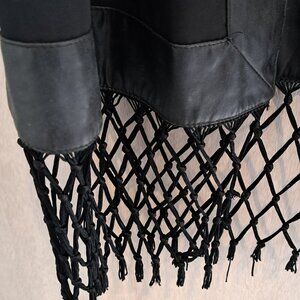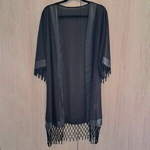 Black sheer kimono with fringes pleather accents