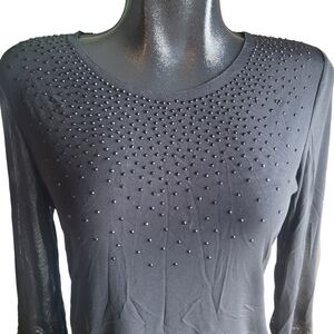 Black sheer long sleeve with lace and bead detailing M