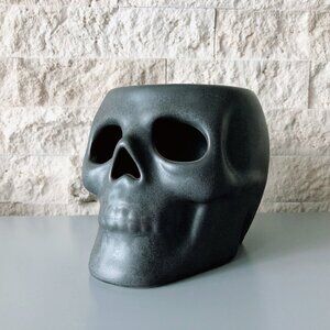 🎃 Black skull ceramic candle holder Halloween decor