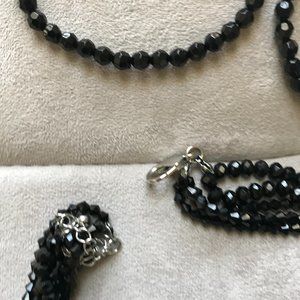 Black and grey necklace and bracelet set. 1 - black and grey necklace 5 - black bracelets that match the necklace