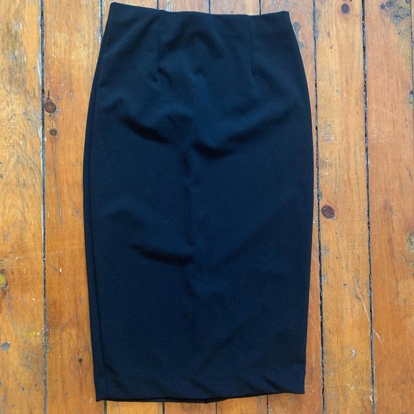 Stretchy pencil skirt, hitting just below the knees with slit for walking and flattering darts along the waist. No zipper or buttons, slip on with stretch fabric. Great for professional outfits! Hardly worn.