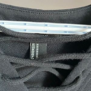 Criss-crossed black sweater, super warm and soft for the fall time. Barely ever worn, and oversized.