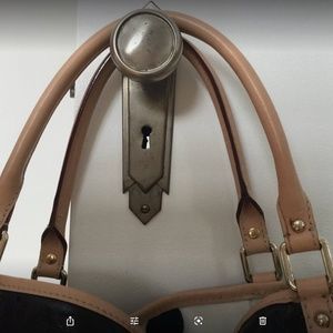 Purse Kate Spade in a very good condition. Black patent leather and beige leather handles, interior in fabric with black dots on a white background, attaches with a small clip.