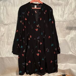 Black tunic featuring colorful floral patterns with the long sleeves