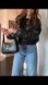 Black vegan leather bomber jacket