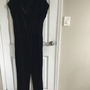 Black velvet look jumpsuit Halston Large ,washable