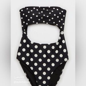 Black & white polka dot cutout one-piece strapless swimsuit - size XL