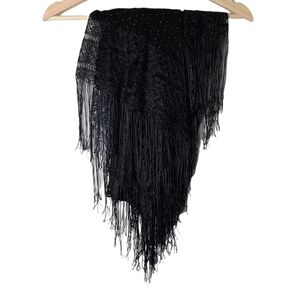 Black, yellow,knitted ,poncho with long fringe string. in great condition, very pretty, super comfortable. one Size