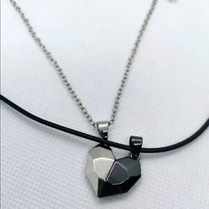 ✅Black and Silver Plated Magnetic Heart 💜 Necklace