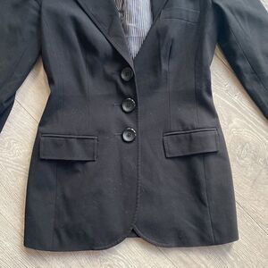 Flattering blazer with striped satin liner for a cute rolled up cuff. Excellent shape.