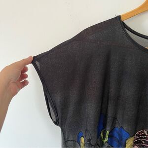 Black Butterfly Graphic Printed Loose Drop Shoulders Short Sleeve Blouse