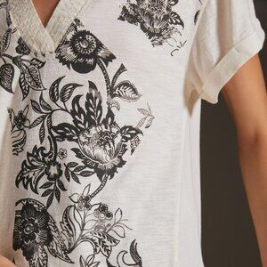 Black&Cream Colored, V-Neck Short-Sleeve Top- Pre Loved Anthroplogie