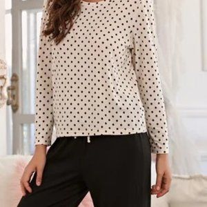 Polka Dot Tee With Pants Pajama Set Black and Cream Colour Long Sleeves, Round Neck, Drawstring Sizes available: XL Brand new 65% Cotton, 35% Polyester with Slight Stretch Accepting offers, bundle to save.
