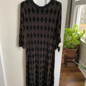 Black/Gold long maxi-style slip on stretch dress Med to Large