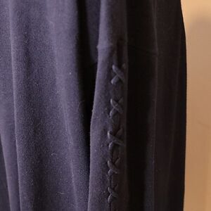 Black longline cardigan from Nordstrom brand, Olivia Warren. Features open draping with unique lace up detailing on the sleeves.