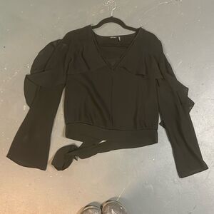 Beautiful sheer black bell sleeve crop Marciano blouse with back tie