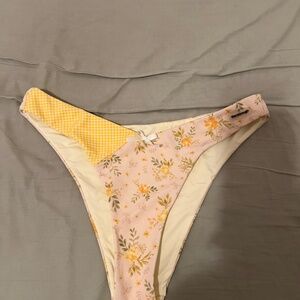 I changed my mind (not my style) but passed the return window so couldn’t return! Elya Tankini in Size Small + Amber Cheeky Bottoms in Size Medium both in Marigold Pointelle print.