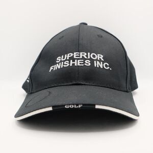 A dad hat/baseball cap/trucker cap with embroidered "SUPERIOR FINISHES INC." on to the front of the hat.