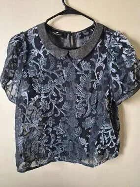 Black/silver translucent blouse