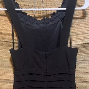 Sleek/comfortable/form fitting/classy/unique black drsss perfect for weddings and cocktail parties and a night on the town!