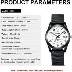 【Mens watches】: Analog quartz movement, imported quartz watches made with an anti-scratch mineral dial and a stainless stainless steel case, superbly designed and durable. Ultra soft plastic bracelet, wear and stripes resistant, breathable, easy to maintain.