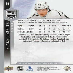 Blake Lizotte (LA Kings) 2020/2021 Upper Deck Series 1 Hockey Card - Number 86