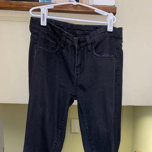 Blank NYC Waxy Black Jeans with rips by the knees. There is one hole by one of the belt loops.