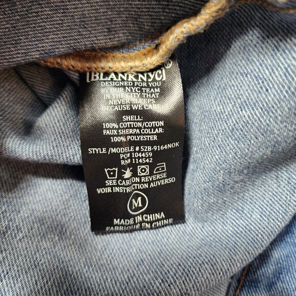 Blank NYC Medium Blue Long Sleeve Button Down Denim Jean Jacket Sherpa Collar
