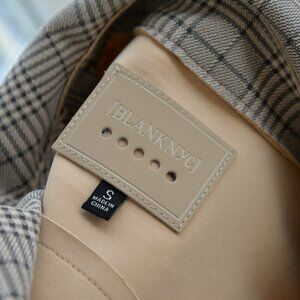 This cropped moto jacket from Blank NYC features an asymmetric zip. Crafted from a plaid fabric, this jacket is also lined.