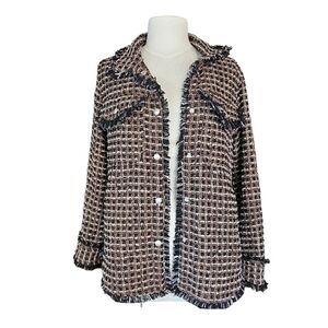 Blank NYC Retrograde Neutral Oversized Boxy Fringe Shacket Size S