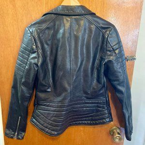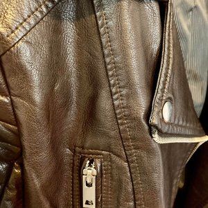 Gorgeous vegan leather moto jacket in a very dark chocolate brown. Asymmetrical zip and silver hardware. In great condition.