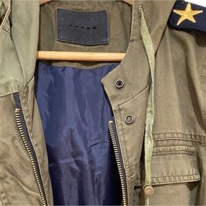 Blank NYC lined and hooded army green jacket with cuff & shoulder detail…