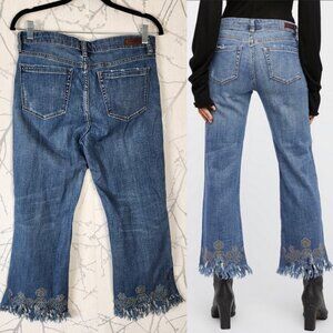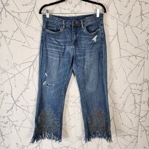 BlankNYC Stretch Denim High Rise Studded Kick Flare Crop Jeans