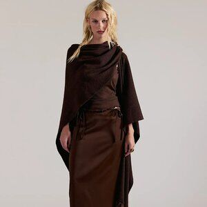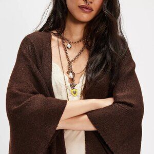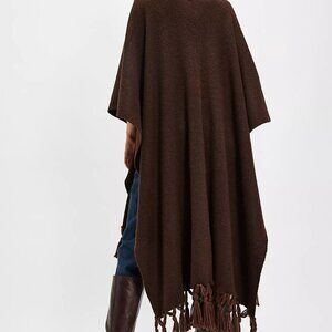 Designed to be a classic in your accessories collection for countless years to come, this effortless duster is featured in a drapey, relaxed fit and super-soft cozy knit fabrication with defined tassel trim at bottom for the perfect finishing touch. Color is Chocolate. Gorgeous duster. New!