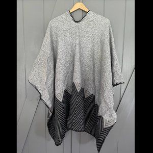 Heavy weight blanket shawl grey on grey design with blanket stitch trim. NEW never been worn.
