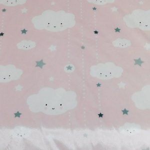 This adorable Blankets and Beyond Pink with White Happy Clouds and Gray Stars Baby Blanket is in Great clean bright condition. Blanket measures 27" x 30" . Blanket is 100% Polyester - Hand Wash - Air Dry. Top side of the Blanket is soft velour feel Pink with Smiling White Clouds and Grey Stars. Underside is White Plush.