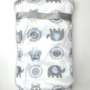 Blankets and Beyond Elephant Owl Baby Blanket White Blue Grey Circles NWT