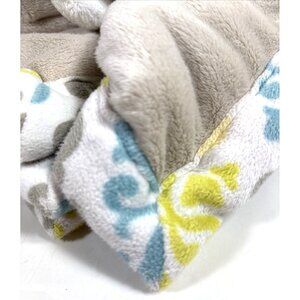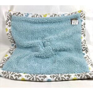 Blankets and Beyond Gray Bunny Rabbit Lovey Security Blanket Blue Damask Trim.
