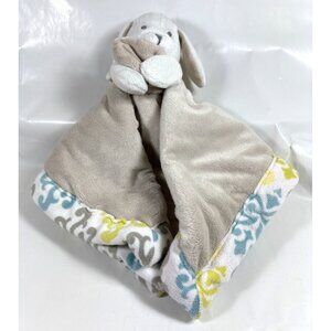 Blankets and Beyond Gray Bunny Rabbit Lovey Security Blanket Blue Damask Trim