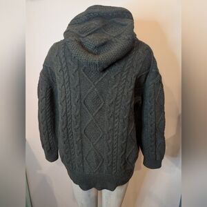 Blarney Woolen Mills Aran hooded Merino Wool Sweater, Green Women's Size L.