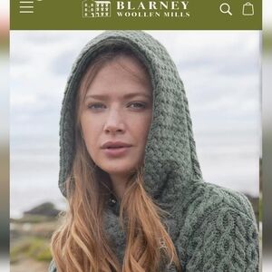 Wrap yourself in the warmth and sophistication of this exquisite, Merino wool hooded sweater from Ireland's renowned Blarney Woollen Mills. With its earthy green hues and classic aran knit design, this stunning sweater exudes quality and fine craftsmanship. Crafted from the finest Merino wool, it promises unparalleled warmth and comfort on crisp fall days. This incredible sweater is a rare find in North America -don't miss your chance to own a true treasure!