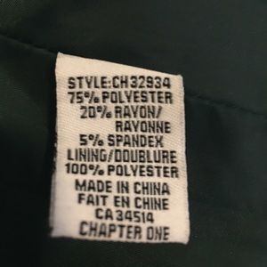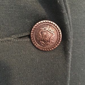 Dark green blazer in small size. This blazer is not made of stiff material but is soft and more loose fitting, even though it is a small it runs a bit on the bigger size. Excellent condition, barely worn.
