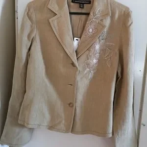 Linen Blazer with stitched flower pattern